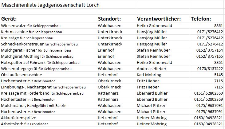 Jagdgenossenschaft Lorch - Maschinenliste Jagdgenossenschaft Lorch