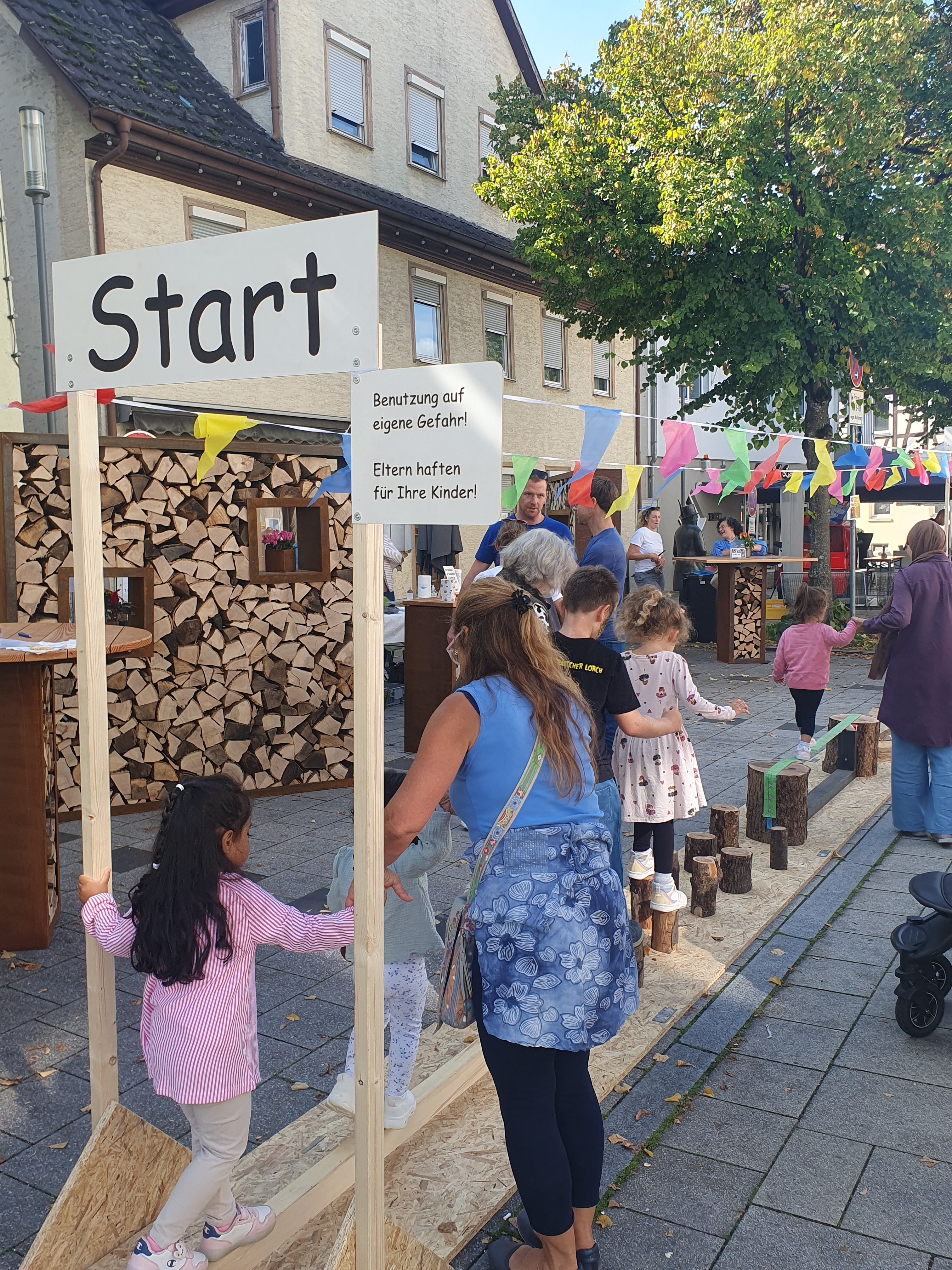 Die Hauptstraße war dicht gesäumt von abwechslungsreichen Ständen. So konnten Kinder ihre Geschicklichkeit auf einer Balancierstraße erproben oder ihrer Kreativität an einer Malstation freien Lauf lassen. Bei einer weiteren Station galt es, unterschiedliche Gerüche – von Essig bis Pfeffer – zu erkennen, während an einem anderen Stand Plüschfiguren erfühlt werden konnten. Auch für Erwachsene gab es spannende Mitmachaktionen und Informationen.