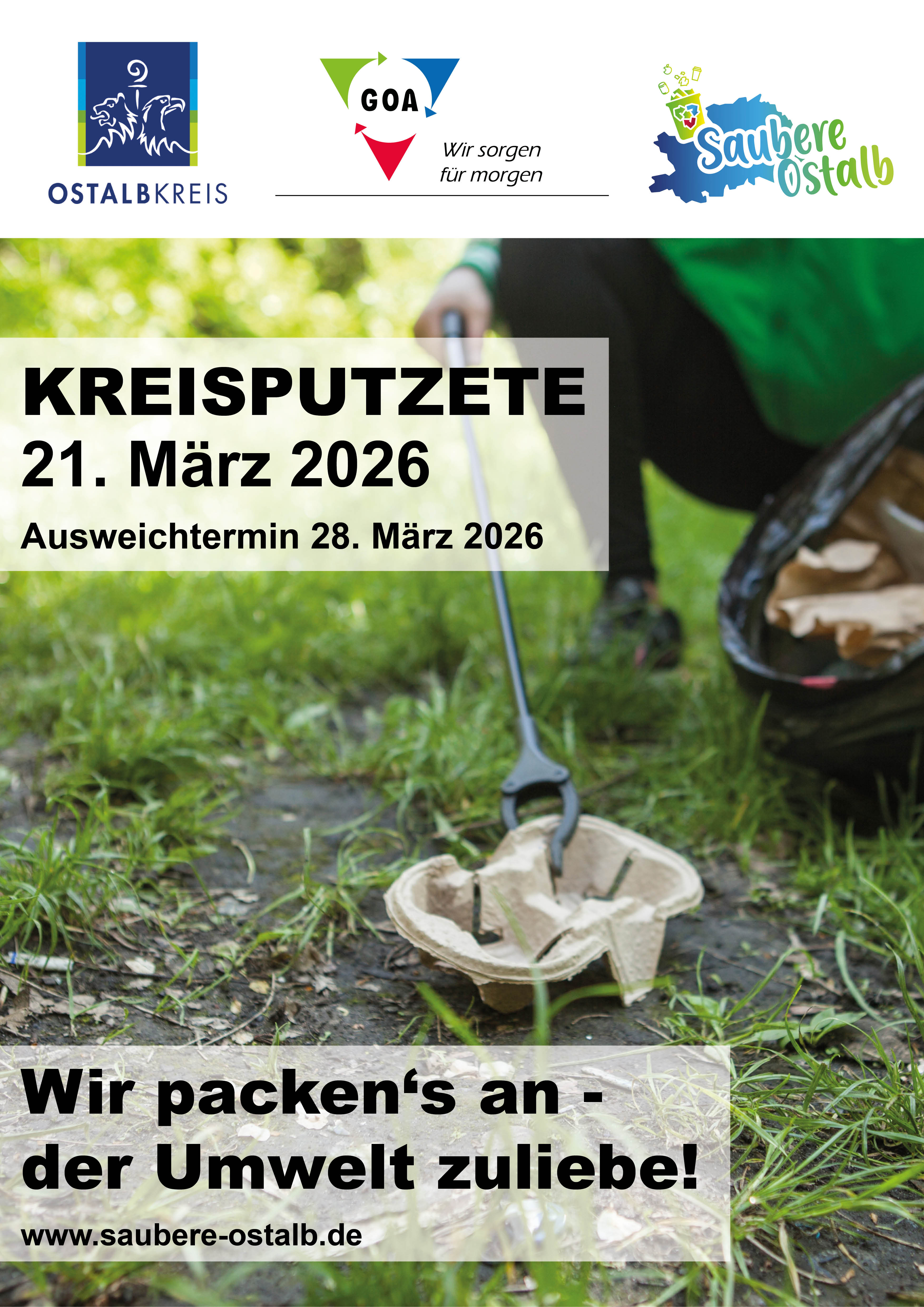 Am Samstag, 21.03.2026 beteiligt sich die Stadt Lorch wieder bei der Kreisputzete. Das diesjährige Motto lautet „Gemeinsam für einen sauberen Ostalbkreis“. Für eine erfolgreiche Aktion benötigen wir wieder viele Helferinnen und Helfer.