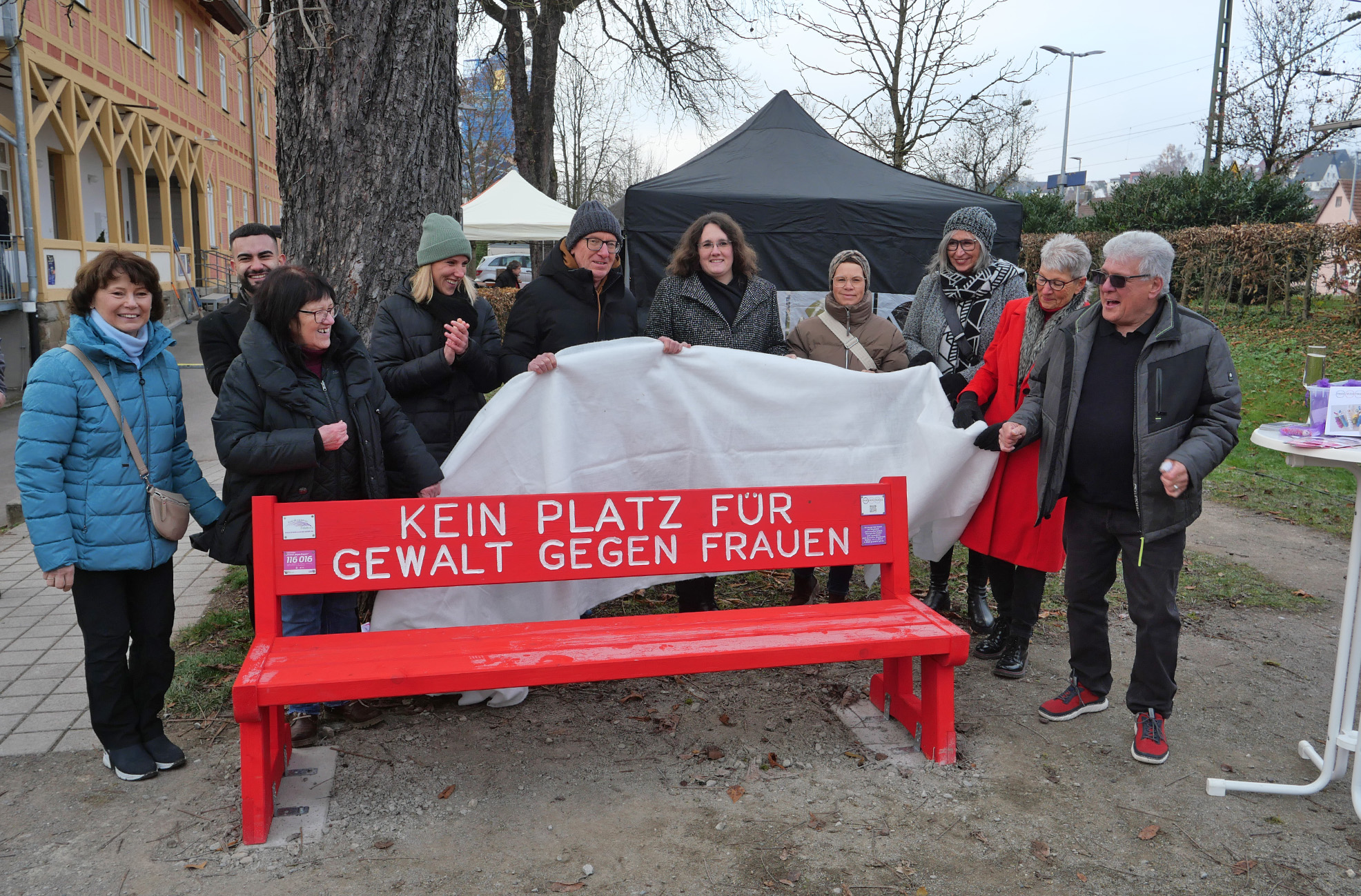 Rote Bank in Lorch enthüllt – Sichtbares Zeichen gegen Gewalt