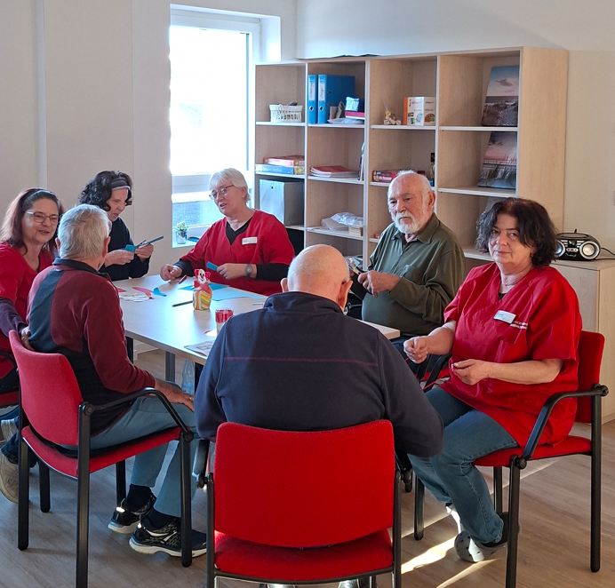 Der Tagestreff ist gedacht für ältere Menschen, die ihren Tag gerne in Gemeinschaft verbringen möchten. Im Mittelpunkt stehen Begegnung, Austausch und ein strukturierter und ungezwungener Tagesablauf. Die qualifizierten Betreuungskräfte unterstützen selbstverständlich im Bedarfsfall auch bei der Mobilität sowie alltäglichen, pflegerischen Tätigkeiten. Der Tag beginnt mit einem gemeinsamen, kleinen Frühstück. Tageszeitungen und das Amtsblatt liegen aus, sodass man gut informiert in den Tag starten und miteinander ins Gespräch kommen kann. Der Austausch über aktuelle Themen gehört dabei ebenso dazu wie das gemütliche Beisammensein.